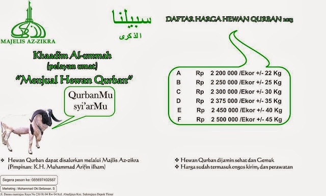 SubhanAllah demikian besar keutamaan qurban sahabatku, bagi sahabatku ingin berqurban di mesjid Az Zikra Sentul yg insyaAllah langsung abang sendiri sbg penyembelihnya, silahkan hubungi Akhi Taufik 08129509324. "Semoga Allah terima amal ibadah Qurban kita ... aamiin".